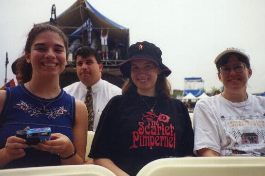 In July, 1998, NYC hosted the Goodwill Games. The cast of the Scarlet Pimpernel participated in two free concerts held in Battery Park City. Lauri Landry, Eric Bennyhoff (T. Eric Hart) and George Dvorsky (u/s Marguerite, Chauvelin and Percy - SP1) performed songs from the show at one free concert, attended by fans. Here are Anna DelGenio, Kelly and me at that show:
