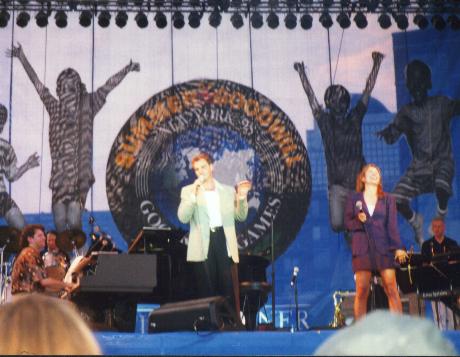 Linda Eder performed with Douglas, Rob Evan, Carl Anderson and Chuck Wagner in another free concert on an incredibly hot and humid evening. Even the rain late in the show didn't break the heat. The heat, however, didn't stop Douglas from making Linda laugh during the show.