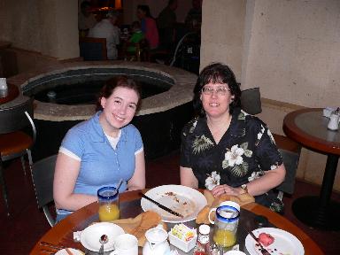 We did our usual favorites here, Pirates of the Caribbean, the Haunted Mansion and the Tiki Room. In fact, we arrived just in time to see the last show of the night at the Tiki Room, which was really cool. It would have been disappointing to have missed it. Other rides we enjoyed here were the Peter Pan and Winnie the Pooh rides. Probably the best thing we saw here was the 3-D show, Mickey's Philarmagic. The premise is that Donald Duck has swiped Mickey's magic baton, which he uses to lead the orchestra of instruments, and then loses it. The whole story involves Donald's attempts to retrieve the baton, through scenes from many of our favorite Disney movies. The 3-D effects are amazing and when you're in the Be Our Guest scene in Beauty and the Beast, you can actually smell the food. I don't know how they did that. They've taken those 3-D effects, which I thought were spectacular in A Bug's Life and the Muppets 3-D show, to greater heights. It's a must-see if you're going to the Magic Kingdom.